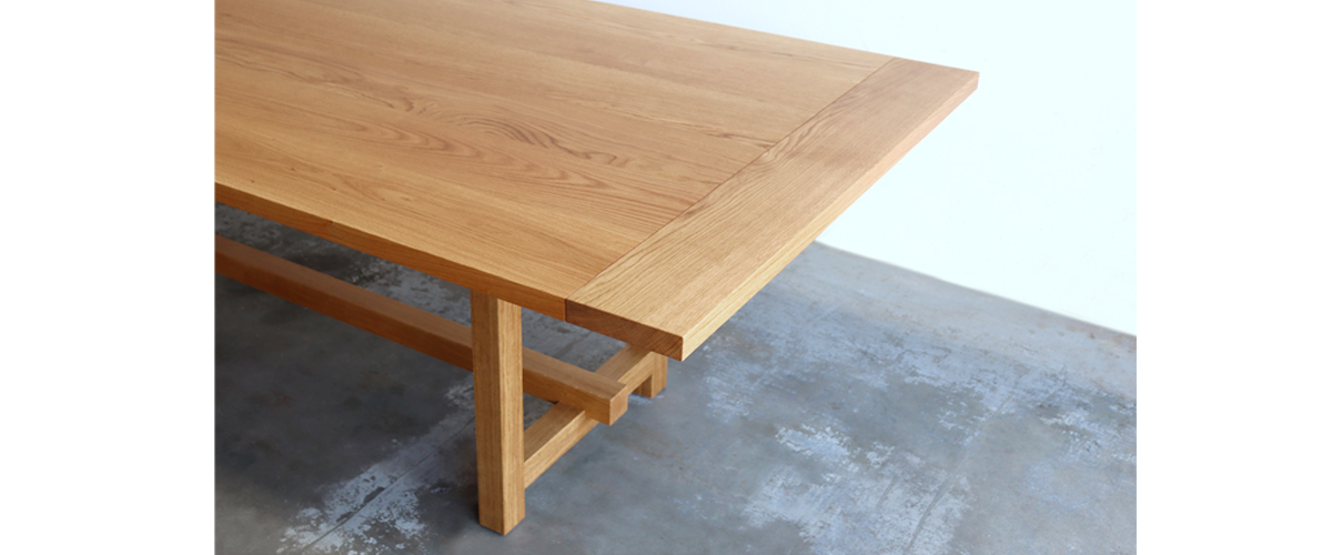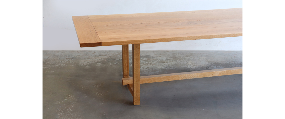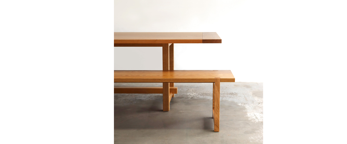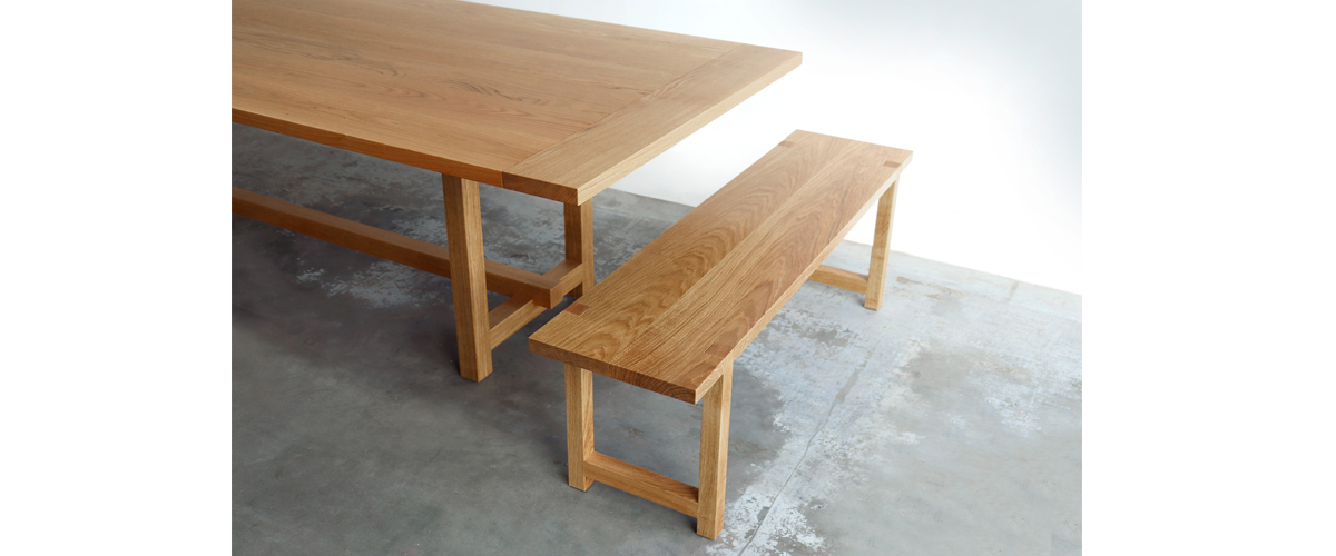 The Grace Dining Table is a refined barn table design with Bread Board ends. Shown with the Grace Bench Seat.